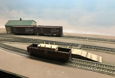 Having unpacked my Alco RS3 #229, I set up a west run of a freight extra from the, as yet unnamed, east staging. Using a switch list to organize the work, I arranged for pick ups and drop offs at the NP interchange, pick ups and drop offs at the trailing point switches in Nooksack, and some cars to continue on to Ferndale (in the west staging.) Using the switch list to list cars to be picked up and dropped off worked well. However, after almost immediately realizing that the Nooksack track had not been used or cleaned recently and that I hadn't cleaned the wheels of the RS3 since before packing it to move in 2021, I took a break to clean wheels and track. I thoroughly enjoyed doing some switching work, guided by just a switch list. I think that the process would work well with a second person, breaking the tasks up between engineer and conductor.